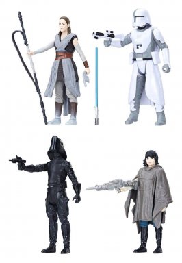 From "Star Wars: The Last Jedi" comes this pack including action figures of Rey (Jedi Apprentice), First Order Snowtrooper, First Order Gunner and Rose. The 3 3/4-inch scale figures come with accessories in a window box packaging.